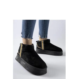 Čierne snehule na platforme Scavi sú ideálnou obuvou na zimu, vyrobenou z odolného syntetického materiálu. Majú stredný podpätok, ktorý im dodáva na elegancii a zároveň ich robí pohodlnými pri nosení. Zateplená konštrukcia vás zahreje aj v tých najchladnejších dňoch, zatiaľ čo vysoký zvršok vás ochráni pred chladom a vlhkom. Vďaka nazúvacej konštrukcii sa ľahko obúvajú aj vyzúvajú. Okrúhla špička dodáva topánkam roztomilý nádych, zatiaľ čo stabilná platforma poskytuje pohodlie a istotu pri chôdzi. Čierne snehule Scavi na platforme sú nielen praktickou, ale aj štýlovou obuvou, ktorá sa skvele hodí na prechádzky po meste aj na vonkajšie aktivity.