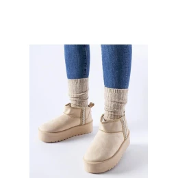 Béžové snehule Dennison na platforme sú ideálnou voľbou pre tých, ktorí ocenia módny vzhľad a pohodlie počas zimných dní. Topánky sú vyrobené z kvalitnej ekokože a poskytujú teplo a ochranu pred chladom. Ich okrúhla špička im dodáva očarujúci vzhľad, zatiaľ čo stredný podpätok im dodáva elegantný nádych. Výška za členkom poskytuje pri ich nosení väčšiu stabilitu. Vďaka priaznivej cene sú navyše dostupné pre každého. Tieto nazúvacie snehule sú ideálne na prechádzku po meste alebo na víkendovú lyžovačku. S nimi môžete spojiť štýl s funkčnosťou v každej situácii. Skvele sa hodí na jesennú a zimnú sezónu. Technické parametre: - Vonkajší materiál: ekologická koža - Zateplenie: Áno - materiál podrážky: plast - Farba podrážky: béžová - Zapínanie: Podrážka: 2,5 mm: Spôsob zapínania: Slip-on - Kolekcia: jeseň/zima Béžové snehule na platforme Dennison musí mať každý, kto ocení módny vzhľad a pohodlie v jednom.
