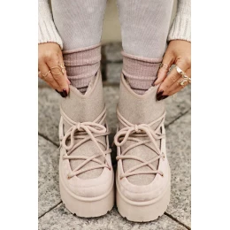 Tieto štýlové snehule na platforme sú dokonalou kombináciou módy a pohodlia. Majú praktické šnurovanie vpredu, ktoré zaručuje dobré priľnutie k nohe. Vnútro s kožušinovou podšívkou zaručuje teplo počas mrazivých dní. Sú pohodlné a teplé, ideálne na každodenné nosenie, ako aj na zimné prechádzky. Pri výbere veľkosti sa riaďte tabuľkou veľkostí.