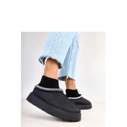 Černé sněhule s ponožkovým svrškem Melary jsou ideální volbou pro ženy, které ocení spojení pohodlí, tepla a módního vzhledu. Tyto dámské sněhule byly navrženy s ohledem na zimní procházky, každodenní výlety do města a výlety do hor. Díky ponožkovému svršku se boty perfektně přizpůsobí noze, poskytují pohodlí a dodatečnou ochranu před chladem. Model Melary je nabídkou pro ty, kteří hledají funkční obuv bez nutnosti přeplácení za známou značku, proto je v popisu uvedena neurčitá značka. Přesto se sněhule vyznačují pečlivým provedením a péčí o detaily, co se odráží na jejich trvanlivosti. Klasická černá barva zajišťuje, že boty skvěle ladí s většinou zimních outfitů, od péřových bund, přes vlněné kabáty, až po sportovní parky. Měkký ponožkový svršek těsně obepíná lýtko, co pomáhá udržet teplo a zabránit pronikání sněhu dovnitř boty. Současně představuje módní doplněk, který obuvi dodává originální