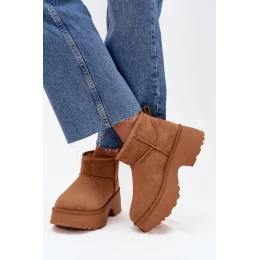 Śniegowce Damskie Niskie Wsuwane Ocieplane Futerkiem Camel Mavelle