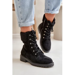 Dámske čižmy z mäkkého eko-semišu. Vnútro je podšité kožušinou, ktorá zaručuje pohodlie počas chladnejších dní. Zvršok zdobí štýlová kožušina. Model so šnurovaním a s prídavným zipsom, ktorý uľahčuje obúvanie a prispôsobenie sa nohe. Ideálne na jesenné a zimné prechádzky a každodenné nosenie.