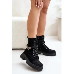 Dámske čižmy z ekologického semišu s príjemným nádychom. Stoja na plochom podpätku. Zapínanie na zips a dodatočné šnurovanie. Zaoblená špička. Ozdoba na zvršku dodáva jedinečný šarm. Vnútro je zateplené návlekom na topánky, ktorý zabezpečí pohodlie a teplo počas chladných dní!