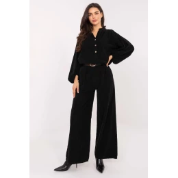 Elegantné slučkové nohavice v ležérnom štýle, ktoré sú ideálne na každý deň. Sú vyrobené z mäkkého materiálu s vysokým obsahom polyesteru a poskytujú pohodlie a komfort počas celého dňa. Model má vysoký pás s elastickou gumou, ktorá zabezpečuje ideálne prispôsobenie sa postave a pohodlie pri pohybe. Široké nohavice dodávajú nohaviciam moderný, mierne retro charakter a vložené bočné vrecká im dodávajú praktickosť. Celkový vzhľad dotvára zopnutý pás, ktorý zvýrazňuje pás a dotvára štýlový vzhľad. Tieto látkové nohavice sú skvelou voľbou pre ženy, ktoré oceňujú voľnosť a elegantný minimalizmus v každodennom stylingu.