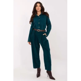 Pohodlné a štýlové dámske nohavice s voľným strihom, ktoré sú ideálne na každý deň. Sú vyrobené z mäkkého polyesteru, ktorý zaručuje pohodlie pri nosení a voľnosť pohybu. Model má vysoký pás s elastickým pásom, vďaka ktorému dokonale sedí a zvýrazňuje pás. Nohavice majú bočné vrecká na zips a otvorené vrecká na zadnej strane, čo im dodáva praktickosť. Celkový vzhľad dotvára zapínanie na opasok v páse, ktorý je módnym a funkčným doplnkom. Hladký materiál a široké nohavice im dodávajú ľahkosť a nonšalantnosť, sú ideálne na ležérne a každodenné štylizácie, či už s elegantnou košeľou alebo voľným tričkom.