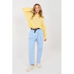 Stylové štručkové kalhoty ve střihu mrkve jsou skvělým návrhem na každý den i do práce. Jejich neformální charakter v kombinaci s elegantními detaily zajišťuje, že se model skvěle hodí do městských stylizací. Hladký vzor zdůrazňuje nadčasový charakter kalhot a usnadňuje jejich kombinování s různými kousky šatníku. Model s vysokým pasem krásně zvýrazní pas a elastický pásek v pasu zajišťuje pohodlné přizpůsobení se postavě. Dalším bonusem je zapínací pásek, který celku dodává stylové zakončení. Zužující se nohavice a ozdobné záložky vpředu dávají kalhotám módní, lehce elegantní charakter a opticky zúžují postavu. Kalhoty jsou vyrobeny z příjemné směsi bavlny s přídavkem elastanu, což zaručuje pohodlí při nošení a volnost pohybů. Boční kapsy zvyšují funkčnost modelu. Jedná se o pohodlný a stylový návrh na mnoho každodenních příležitostí.