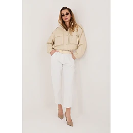 Dámske manšestrové nohavice v elegantnom cigaretovom strihu, ktoré sú ideálne na každodenné nosenie. Sú vyrobené z vysokokvalitnej zmesi bavlny a elastanu, poskytujú pohodlie pri nosení, pružnosť a dokonale priliehajú k postave. Model s elastickým pásom zaručuje pohodlie a voľnosť pohybu, zatiaľ čo dodatočný zapínací pás zvýrazňuje pás a dodáva celku štýlový charakter. 7/8 dlhé zúžené nohavice opticky zoštíhľujú postavu a dodávajú moderný vzhľad. Nohavice v jednofarebnom vzore bez klasického zapínania, vybavené praktickými bočnými vreckami, spájajú funkčnosť s nadčasovou eleganciou.