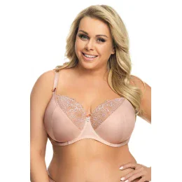 Krásna púdrovo ružová podprsenka s mäkkou kosticou, inšpirovaná štýlom Glamour. V jemných farbách, s mierne trblietavou striebornou výšivkou na výstrihu. Výnimočná, určite sa v nej budete cítiť veľmi žensky. Vrchná časť s miernym prestrihom, boky košíčkov z hladkej látky. Strih s kosticami dobre zhromažďuje prsia a správne ich tvaruje.