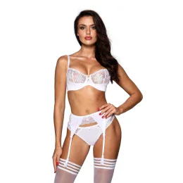 Táto zvodná mäkká podprsenka typu balconette zaujme svojou jednoduchosťou a kvetinovými motívmi. Dvojité riasenie na košíčkoch zvýrazní a naplní vaše poprsie. Vďaka zníženému spojeniu na mostíku sú prsia dokonale rozdelené a je zdôraznený ich okrúhly tvar. Drôty pod košíčkom udržujú poprsie stabilné. Šálka nemá žiadne výplne, je vyrobená z jednej vrstvy čipky. Neodnímateľné ramienka spolu s bohatým zdobením podčiarkujú prirodzenú ženskú krásu. Model sa zapína na dvojitý háčik a očko. Ako doplnok odporúčame tangá a podväzkový pás, ktoré spolu s podprsenkou tvoria originálnu kombináciu.