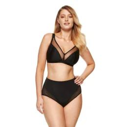 Pohodlná podprsenka bez kostíc určená pre veľké veľkosti. Vyrobené z materiálov príjemných na pokožku. Vďaka špeciálnej konštrukcii bez drôtov poskytuje pocit maximálneho pohodlia. Minimalizačná podprsenka opticky zmenší veľké poprsie. Štvordielne košíčky z hladkého úpletu Simplex dokonale podopierajú prsia. Horná časť košíčkov z tylu jemne vyznačuje prechod medzi podprsenkou a výstrihom. Dvojitá vrstva tylu a laminátom lemované ramienka vo veľkostiach maxi. Zadná časť podprsenky je vyrobená z tylu, ktorý zaisťuje stabilný obvod a dobrú oporu poprsia. Nastaviteľné, neodnímateľné a široké ramienka vo veľkostiach maxi pre väčšie pohodlie. Trojstupňové zapínanie na háčiky a oká zaručuje optimálnu podporu poprsia. Zvislé bočné veľrybie kosti zabraňujúce zvrásneniu bokov. Medzi šálkami je umiestnená koketná dekorácia. Vyberte si zodpovedajúce nohavičky a vychutnajte si príjemný pocit pohodlia a exkluzívny vzhľad celej sady.