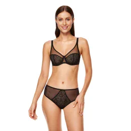 Neobvyklá kombinácia kvetinového plisovania a tylu. Mäkké košíčky z priehľadného materiálu. Zadná časť podprsenky z plisovanej látky. Podprsenka navrhnutá a ušitá v Poľsku.