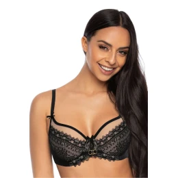 Elegantná a zmyselná mäkká podprsenka Marion v čiernej a béžovej farbe. Košíčky sú zdobené jemnou čiernou čipkou. Vrchná časť košíčkov je z jemnej elastickej sieťoviny, okraj je olemovaný mäkkou bavlnenou páskou. Medzi košíčkami mašlička a akcent šperku, na ramienkach ozdobné mašličky. Zadná časť z lycrovej tkaniny, bez ramienok, nastaviteľné ramienka. Dvoj- alebo trojradové zapínanie (v závislosti od veľkosti) s trojcestným nastavením.