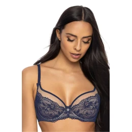 Elegantná a zmyselná mäkká podprsenka Percy v tmavomodrej a béžovej farbe. Košíčky sú zdobené tmavomodrou čipkou. Vrchná časť košíčkov je z jemnej elastickej sieťoviny, okraj je olemovaný mäkkým bavlneným pásikom. Medzi košíčkami je bižutérny akcent, na ramienkach ozdobné mašličky. Zadná časť z dvojitej elastickej sieťoviny. Ramienka bez ramienok, nastaviteľné. Dvoj- alebo trojradové zapínanie (v závislosti od veľkosti) s trojcestným nastavením.
