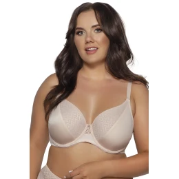Táto mäkká podprsenka je ideálnou kombináciou pohodlia a funkčnosti, vytvorená pre ženy s plnším poprsím. Hlboké, nevyberateľné košíčky s kosticami dokonale podopierajú prsia a jemne ich tvarujú. Špeciálna konštrukcia účinne zhromažďuje prsia z bokov a smeruje ich do stredu, čím krásne zvýrazňuje dekolt. Model so zapínaním na chrbte, nastaviteľným obvodom a neodnímateľnými, plne nastaviteľnými ramienkami zaručuje ideálne prispôsobenie postave a maximálne pohodlie počas celého dňa. Medzi košíčkami sú umiestnené jemné ozdoby, ktoré celku dodávajú jemný, ženský pôvab. Podprsenka je zabalená v elegantnej krabičke, skvelá voľba ako darček alebo spoľahlivý kúsok každodennej bielizne.