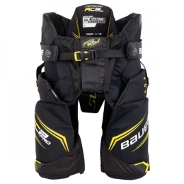 Spodenki girdle Bauer Supreme ACP Pro Sr Oferują graczowi elita pro-poziom ochrony, przylega blisko ciała dla maksymalnej mobilności i szybkości Kluczem do tego sukcesu jest konstrukcja AMP, która dzieli ochraniacz bioder na dwie oddzielne części, dzięki czemu bezproblemowo zachodzą na siebie podczas głębokiego kroku lub skrętu. Daje to graczom pełen zakres ruchu i nigdy nie pozostawia luki w ochronie! Bauer zastosował swoją unikalną piankę Vent Armor Foam w anatomicznie ukształtowanych ochraniaczach nerek, aby zapewnić nie tylko doskonałą ochronę przed uderzeniami, ale także oddychalność. Formowany plastik we wszystkich innych kluczowych obszarach uderzenia zapewnia graczowi ochronę i ochronę w każdym scenariuszu gry. Posiadają dużą ilość regulacji, której gracze mogą użyć, aby dostroić swoje dopasowanie. Ochraniacze na biodra można wysunąć lub schować o 1 cal, co jest idealne dla szybko rosnących i wysokich/chudych graczy. Ochraniacze na uda można szczelnie zamkn