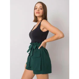 Tmavozelené dámske šortky s opaskom.