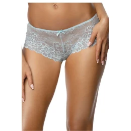 Pružné a zvodne priesvitné šortky vyrobené výhradne z jemnej modrej čipky. Sexuálne zahaľujúci ženský pôvab. bavlnený klin.