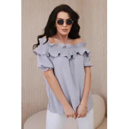 Španielska blúzka s ozdobným volánom sivá