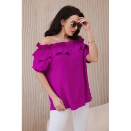 Španielska blúzka s ozdobným volánom tmavo fialová