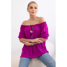 Španielska blúzka s ozdobnými rukávmi tmavo fialová