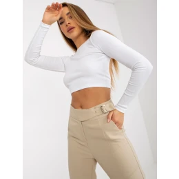 Béžové nohavice z rovného materiálu s vysokým strihom.