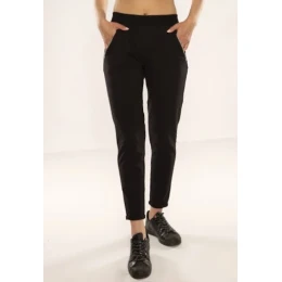 V páse modelu je pohodlný lem. Na úrovni bokov sú vrecká so zapínaním na zips. Nohavice sú ľahko zúžené a sú olemované malou manžetou.