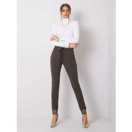 Tmavé khaki tepláky s aplikáciou .