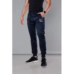 Tmavomodré pánske teplákové nohavice s potlačou (8K178-25)