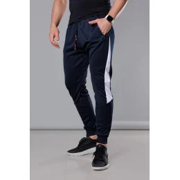 Tmavo modro-biele pánske teplákové nohavice so vsadkami (8K168)