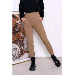 Dámske tepláky, dĺžka nohavíc 7/8, rebrované manžety, dve vrecká vpredu, široký ozdobný elastický pás.