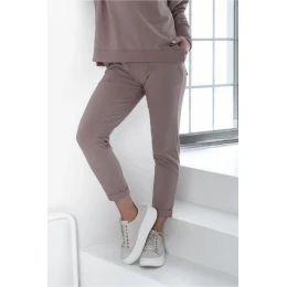 Nohavice majú nohavice v 7/8 dĺžke. Spodný okraj nohavíc je vyhrnutý. V prednej časti modelu sú dve vrecká. Zadný diel nohavíc je hladký.