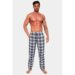 Pánske dlhé nohavice na spanie s vreckami. Vyrobené z kvalitnej bavlny, s elastickým pásom lemovaným bavlnou a dodatočnou šnúrkou na úpravu obvodu.