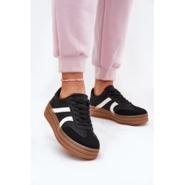 Dámske tenisky vyrobené z ekologickej kože. Umiestnené na platforme, ktorá opticky zjemňuje postavu. Zaoblená špička zaručuje pohodlie počas celého dňa. Stielka z materiálu potiahnutého penou zabezpečuje dostatočné odpruženie. Tieto tenisky sú ideálnym návrhom na každodennú štylizáciu, spájajú funkčnosť s moderným vzhľadom.