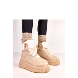 Stylové sportovní kotníčkové boty se šněrováním jsou ideální kombinací městského stylu a každodenní pohodlí. Vyrobené z vysoce kvalitní ekologické kůže, působí moderně a jsou snadno udržovatelné. Model je umístěn na pevné platformě o výšce 6,5 cm, která přidává několik centimetrů na výšce a zajišťuje pohodlí při nošení. Botky mají kulatou špičku a podšívku z měkkého kožíšku, která zaručuje teplo v chladnějších dnech. Díky šněrování vpředu a zipu po straně je lze snadno přizpůsobit noze a pohodlně obout. Svršek sahá za kotník (výška 12 cm), což zajišťuje stabilitu a ochranu, a textilní stélka zvyšuje komfort při nošení. Jedná se o model, který se skvěle hodí do městských outfitů, jak k džínům, tak k sportovním šatům.