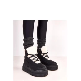Tieto elegantné športové topánky so šnurovaním sú ideálnou kombináciou mestského štýlu a každodenného pohodlia. Sú vyrobené z kvalitnej ekokože, vyzerajú moderne a ľahko sa udržiavajú. Model je umiestnený na pevnej platforme s výškou 6,5 cm, ktorá pridáva niekoľko centimetrov na výške a zaručuje pohodlie počas nosenia. Topánky majú okrúhlu špičku a sú vybavené mäkkou kožušinovou podšívkou, ktorá zaručuje teplo počas chladnejších dní. Vďaka šnurovaniu vpredu a zipsu na boku sa dajú ľahko prispôsobiť nohe a pohodlne obuť. Štítok presahuje členok (výška 12 cm), čo zaručuje stabilitu a ochranu, a textilná stielka zvyšuje pohodlie počas používania. Tento model je ideálny na mestskú štylizáciu k džínsom aj športovým šatám.