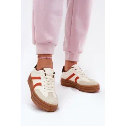 Dámske tenisky vyrobené z ekologickej kože. Umiestnené na platforme opticky zjemňujú postavu. Zaoblená špička zaručuje pohodlie počas celého dňa. Stielka pokrytá penou zabezpečuje správnu absorpciu. Tieto tenisky sú ideálnym dizajnom na každodennú štylizáciu a spájajú funkčnosť s moderným vzhľadom.