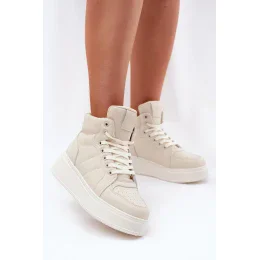Vysoké dámske tenisky z kvalitnej ekokože sú ideálnou voľbou pre ženy, ktoré ocenia pohodlie a moderný štýl. Umiestnené na platforme poskytujú dodatočnú stabilitu a zvýrazňujú postavu, čím jej dodávajú ľahkosť. Model so šnurovaním umožňuje ideálne prispôsobenie nohe. Tieto tenisky sa skvele hodia k mnohým rôznym štýlom, od každodenného až po športový.