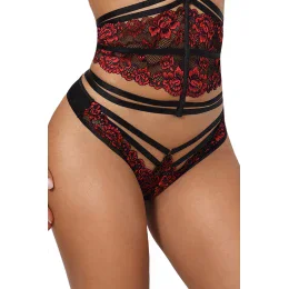 Tieto efektné, extravagantné, červeno-čierne tangá nesmú chýbať vo vašom šatníku. Vzbudzujú fantáziu vďaka vysoko strihanej prednej časti so systémom dvoch pásikov spojených zlatým krúžkom. Tylové zadné časti sú navrhnuté tak, aby boli klasické a pohodlné.