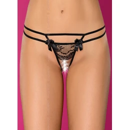Originálne a zmyselné string V-5808 určite upúta pozornosť... a nielen vašu. Čierny dvojitý pás zvýrazní oblosť vašich bokov. Jemná čipková ozdoba zaujme ženským motívom. Saténové mašličky sú hravé a očarujúce. Toto je jedinečný návrh pre pozoruhodné ženy. Nezabudnite na podprsenku V-5801 a podväzkový pás V-5802.
