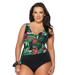 Exoticky kvetinové plavky SKJ 56 sú skvelou alternatívou dvojdielnych plaviek. Dvojdielne zloženie pozostáva z čierneho spodného dielu, ktorý zoštíhľuje boky, a kvetinového vrchného dielu podopretého širokými ramienkami, ktoré odľahčujú chrbát. Výstrih do V zvýrazňuje oblosť poprsia, zatiaľ čo jemné riasenie odľahčuje siluetu. Nechajte sa očariť tropickou exotikou plaviek SKJ 56!