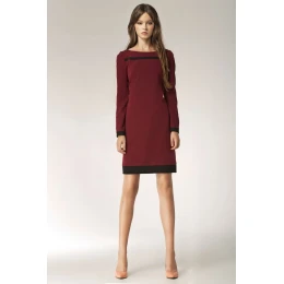 Dlhé rukávy sú ideálne na chladnejšie dni, rovný strih výstrihu s tmavými vsadkami zvýrazňuje líniu ramien, jemne rozšírený lem dodáva siluete ľahkosť a bordová farba je zladená s čiernym lemovaním pre bohatý vzhľad.