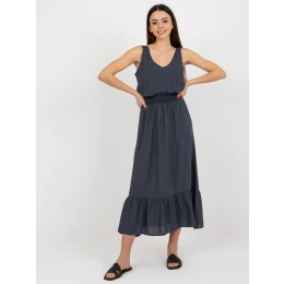Námornícky modré maxi šaty s volánom bez rukávov FRESH MADE .