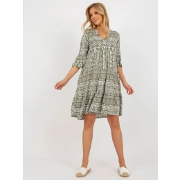 Khaki boho vzorované šaty s volánom POD .