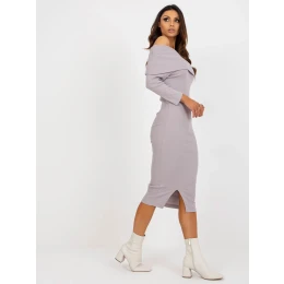 Svetlofialové midi základné šaty s pruhmi.