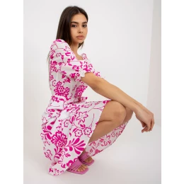 Biele a fuchsiové šaty s rozšírenou potlačou.