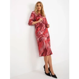 Koktejlové šaty v bordovej farbe s potlačou a 3/4 rukávmi.