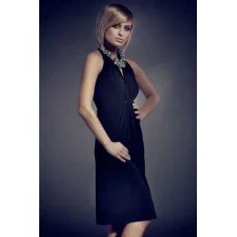 Jedinečné šaty, v ktorých môžete vyraziť na viac či menej formálne stretnutie. Neobvyklý strih štýlovo podčiarkuje ženské pôvaby odhalením výstrihu. Vpredu - nariasená látka zachytená drahokamovou sponou. Šaty sú v oblasti bruška mierne voľnejšie, čo vám umožní cítiť sa pohodlne a dodá vám to sebavedomie.Pružné a mäkké na dotyk, dostupné v rade atraktívnych farieb. Odhalené ramená a chrbát.