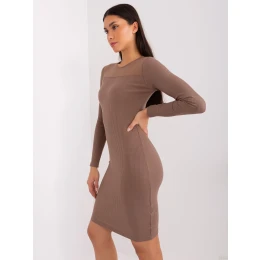 BASIC FEEL GOOD Hnedé šaty s dlhým rukávom .