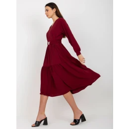 Bordové midi šaty s volánom a výstrihom do V OCH BELLA .