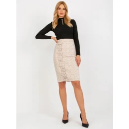 Béžová ceruzková sukňa s rozparkom vzadu.